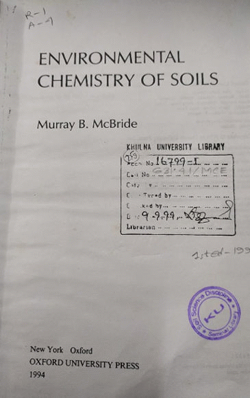 | 631.4 STC 1986 Cycles of soil : carbon, nitrogen, phosphorus, sulfur, micronutrients / | 631.41 BEC 1964 Chemistry of the soil / | 631.41 ESS 2004 Soil and water chemistry : an integrative approach / | 631.41 MCE 1994 Environmental chemistry of soils / | 631.43 GHS 1987 Soil physics / | 631.43 GHS 1987 Soil physics / | 631.43 GHS 1987 Soil physics / |