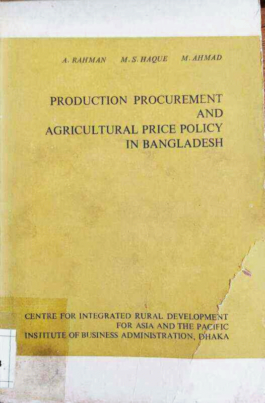 Production Procurement and agricultural price policy in Bangladesh / A. Rahman, M. S. Haque and M. Ahmad.
