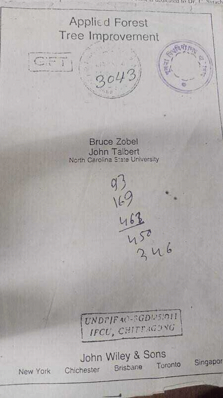| 634 BRA 1984 Applied Forest Tree Improvement / | 634 BRA 1984 Applied Forest Tree Improvement / | 634 FIS 1986 Schlich's manual of forestry : forest Utilization / | 634 FIS 1986 Schlich's manual of forestry : forest Utilization / | 634 HAR 2021 Research achievement of : bangladesh forest research institute / |